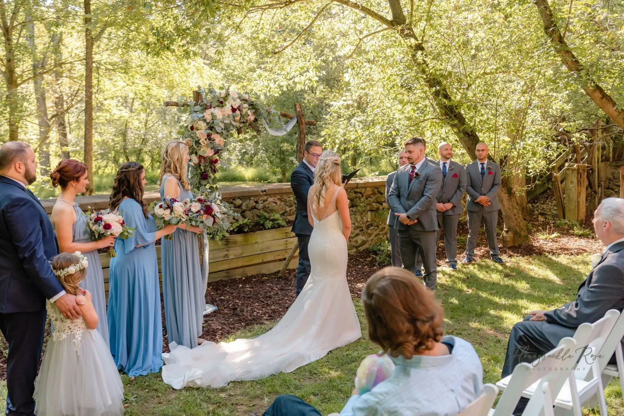 LOVE STORY: Joe and I had heard each other’s names from various mutual friends over the years, although we had never actually met. He was roommates with one of my best friends (and bridesmaid, Sarah), and when we finally DID meet in May of 2017, the attraction was instant. We fell in love almost immediately, and it was clear to both of us that this was the real thing. He says that I make him a better man, and he has grown so much since we’ve been together. He brings out the best in me and has shown love and care to my daughter since day one and me. He proposed in March of 2018 on a hike at Bear’s Den (it was supposed to be in Santorini six weeks later, but he got the ring and couldn’t wait)!