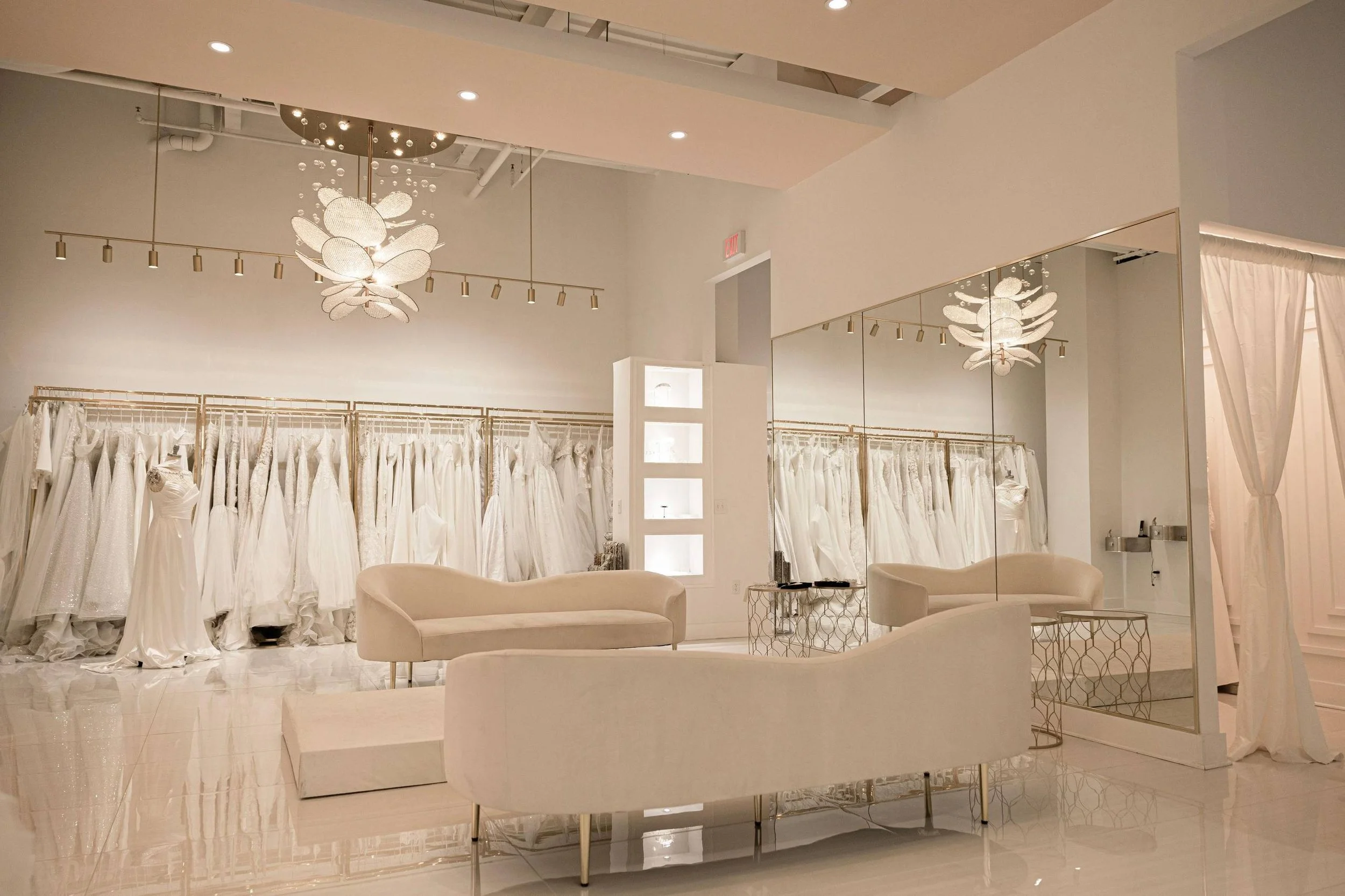 At both locations, we provide the opportunity to customize, mix and match with our exclusive designs. Whether you visit Ashburn or Fairfax, our mission remains the same: to make you feel confident, radiant, and truly beautiful on your special day.